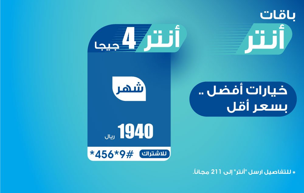 يسر إدارة سبأفون الإعلان عن باقة أنتر 4 جيجا بحلتها الجديدة والمتمثلة في التالي :